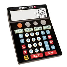 Unique Money Calculator and Traditional Calculator in One! A traditional calculator that could also function as a money-math calculator by showing the dollar signs and the ending zeros on money computations. This calculator lets students see how money-math problems are worked.