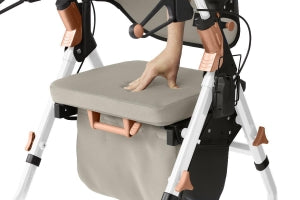- Seat flips up to allow user to stand or walk inside the rollator.