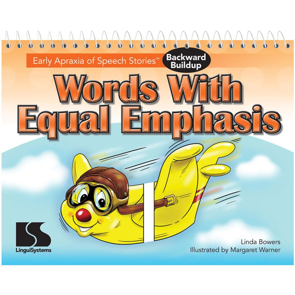 This delightful, innovative series provides motivating practice to improve word stress, intonation, and motor planning for children 3-6. Eight storybooks target two- and three-syllable word productions. These books teach the appropriate stress and intonation by removing the semantic load of a word until mastery of the normal flow and rhythm of the word. Words are divided into syllables. The syllables are imitated repeatedly, in a backward order, until the word is easily said. Each page in these books starts with the final syllable of a word and systematically works forward, ending with the target word. The vibrant illustrations are used as visual and tactile cues for smooth movements at the syllable and word levels. Each book includes 12 reproducible picture cards to use for more practice. Two syllable words are covered in Equal Emphasis, Crawly Things, Things to Ride, and Yummy Things to Eat. Three syllable words are covered in More Yummy Things to Eat, Animals, and Places, and Things People Do.