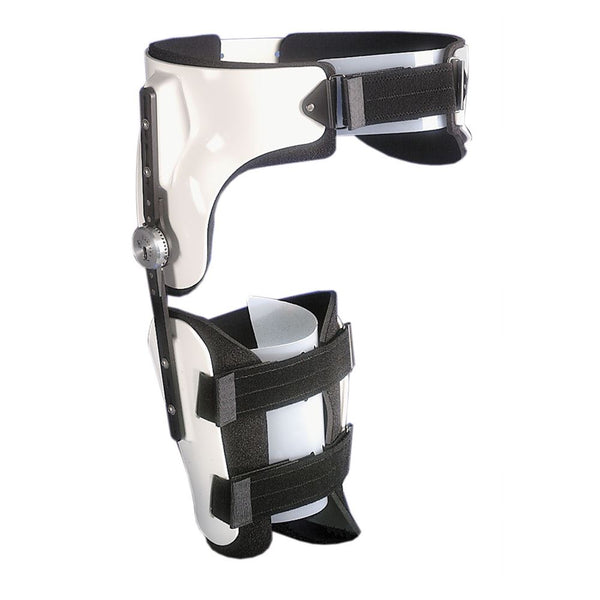 provides firm support and stabilization for nonoperable hip disorders and postoperative, primary or revision total hip arthroplasty. Moisture-wicking neoprene padding. Patent pending "infinite range" hip joint is the only hinge that provides infinite adjustability from -5° to 25° abduction, critical to correct bio-mechanical fitting. Flexion and extension ROM adjustable, too. Pelvic posterior panel features pivoting adjustment mechanism that eliminates need for male and female versions. Lightweight. Easy on and off.