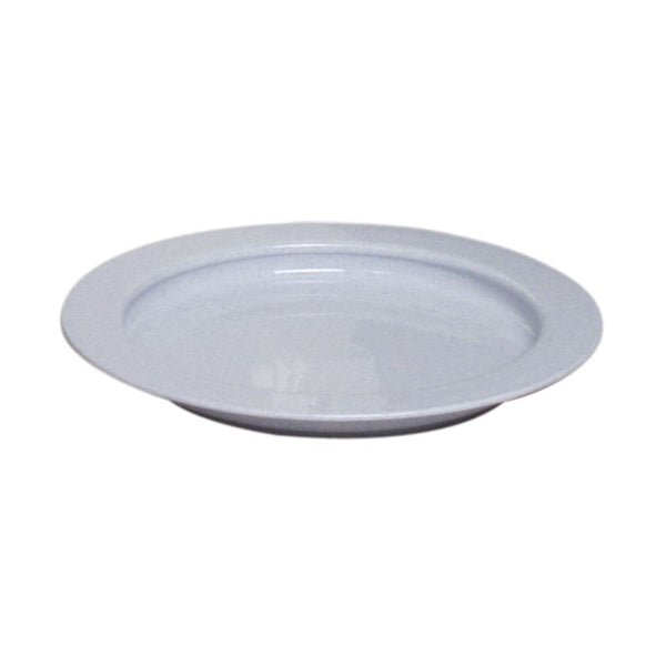 9 in. diameter, look like regular dishes, but provide extra depth and a top rim to help patients with poor coordination negotiate food onto a utensil and up off the plate. Dishwasher safe, plastic polypropylene. Off White or Light Blue Speckle.