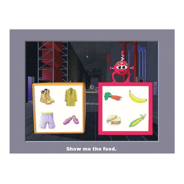 includes three programs that teach cause and effect, a core vocabulary of 50 early nouns, and six basic categories. This package contains , which trains cause and effect, turn-taking, auditory awareness, visual tracking, discrete pointing, and use of a single switch; to train early developing nouns using a highly-structured two-picture format; and for early categorization skills using 60 nouns in six categories.