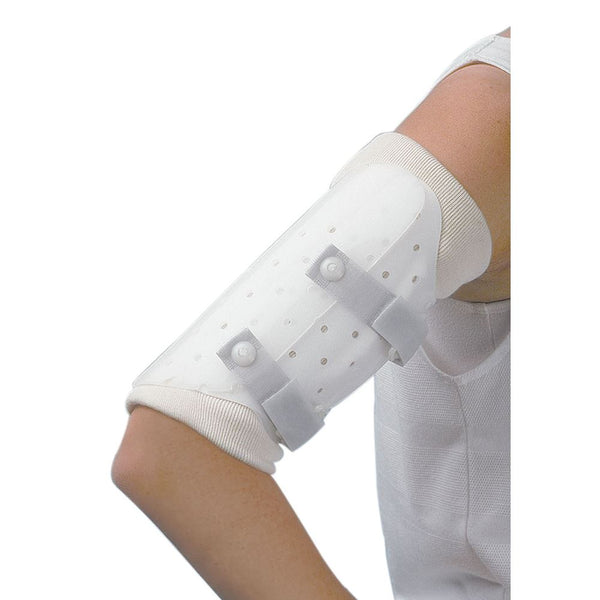 controls humeral segments for treatment of humeral shaft fractures. Full shoulder and elbow ROM. Includes one stockinette. 1/8" thick foam padding.