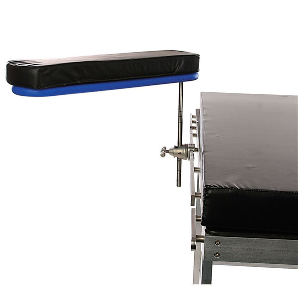 AliMed Radiolucent Armboards feature a permanently attached mounting post for height adjustment up to 13". Help ensure proper patient positioning; lateral, supine, prone, Fowler's and beach chair positions. Lightweight – only 3.25 lbs. Easy to use, durable and easy to clean. Rotate a full 360º. Attach to side rail of standard operating room table with a Clark Socket (sold separately). Pads and straps sold separately.
