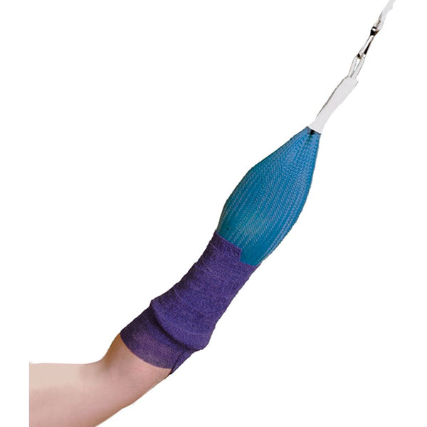 Rycor Full Hand Trap 19"L x 12-1/2" ID circumference. Secure to hand with roll of CoFlex adhesive stretch wrap (included). Not made with natural rubber latex. 1-3/4"L loop. One size fits all.