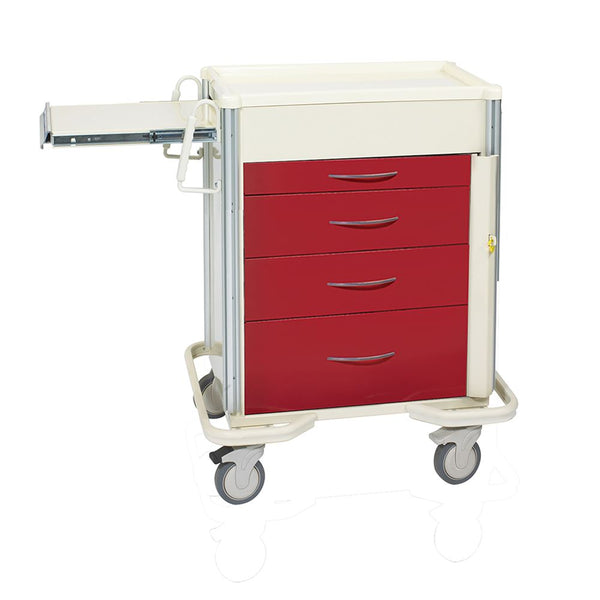 30% lighter than our Standard Series, allowing better control and maneuvering for effortless handling that gets you there faster. Loaded with features, including a larger work space to keep supplies organized and accessible during procedures and extrusion corners and movable mounting panels to load up on accessories. Choose from five drawer colors in matching solid frame or two-tone Beige frame: Beige, Dark Blue, Red, Slate Blue, or Yellow.