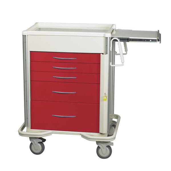 30% lighter than our Standard Series, allowing better control and maneuvering for effortless handling that gets you there faster. Loaded with features, including a larger work space to keep supplies organized and accessible during procedures and extrusion corners and movable mounting panels to load up on accessories. Choose from five drawer colors in matching solid frame or two-tone Beige frame: Beige, Dark Blue, Red, Slate Blue, or Yellow.