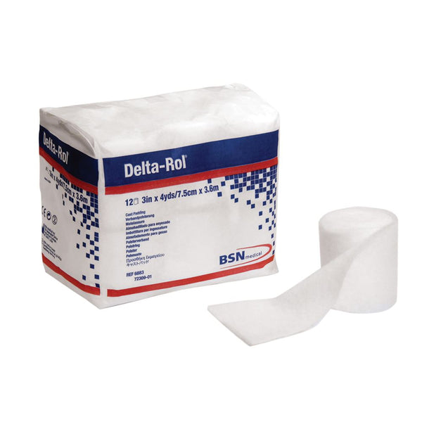 BSN Delta-Rol Synthetic Cast Padding Constructed of 100% acrylic fibers that wick moisture away from the skin. Easy to tear, highly conformable, and will maintain its bulk even when wet, resulting in an excellent continuous cast fit. Not made with natural rubber latex.