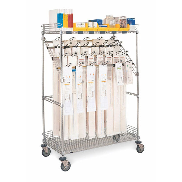 Product Specification: Catheter Procedure Cart, 24" x 60", 3 Shelves, 4 Bars, 24 Hooks, 2 Totes, 6 Bins, 6 Ledges - 926590
