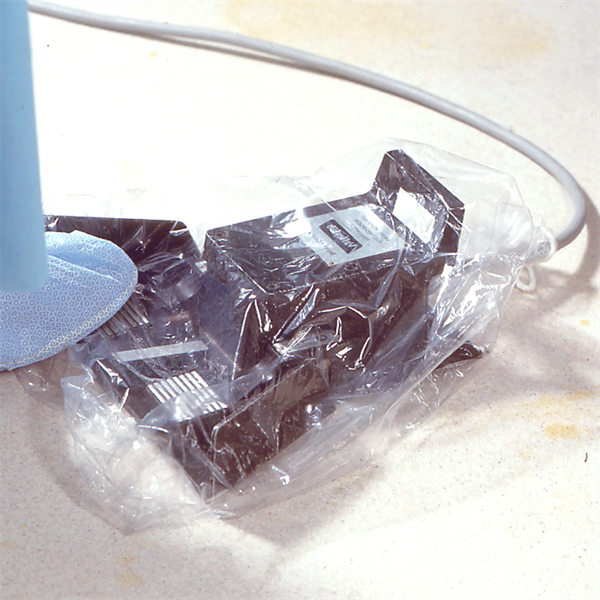 Non-sterile poly drawstring bag with two layers to protect O.R. foot controls from fluids