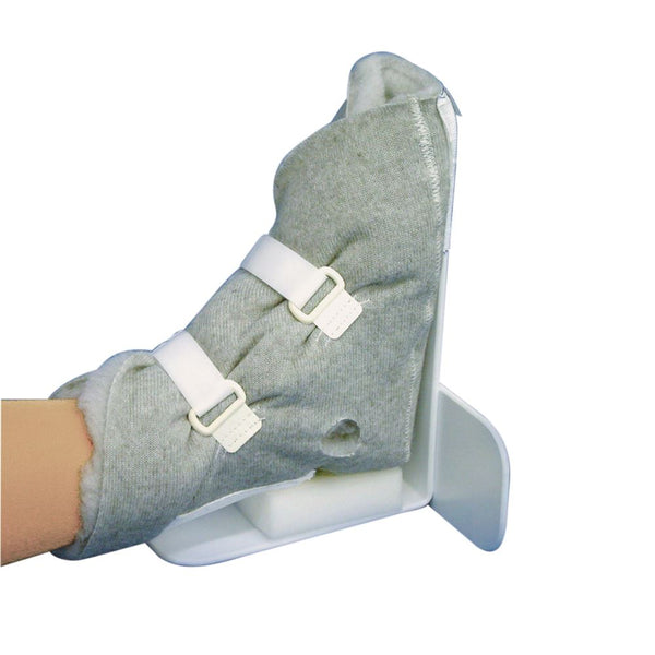 frame can be set in 10° or 20° of internal or external rotation. Thick polyester Kodel liner helps prevent decubitus ulcers. Ventilated for increased comfort. Liners are washable, frame can be wiped clean. Universal size.