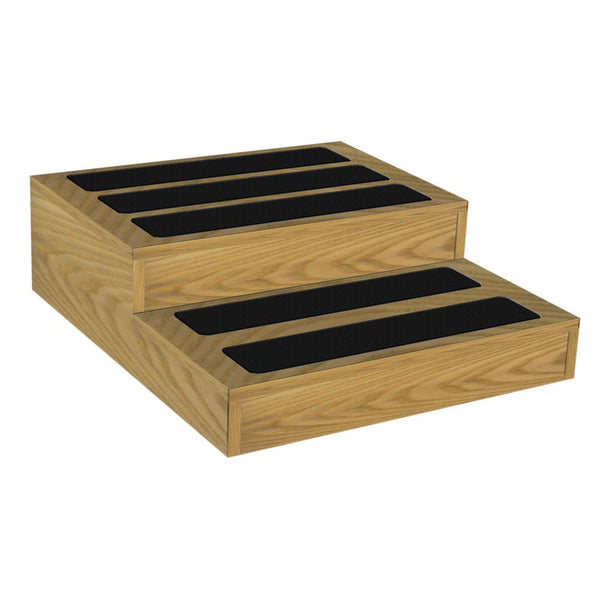 Hausmann Bariatric Footstool Heavy-duty Natural Oak laminated wood construction can be used with treatment tables for Bariatric or general population use. Includes two 4" high steps with safety "anti-slip" treads. First step is 12"D, top step is 16"D.