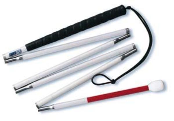 Folding canes from Ambutech feature durability and comfort. Cane sections are made from heavy gauge aluminum and covered with extra-long joints for increased rigidity. The reflective Scotchlite material covers each individual section. This cane features a marshmallow hook tip and is available in lengths between 32" and 64".