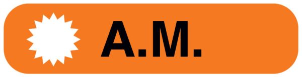 A.M., Medication Instruction Label, 1-5/8" x 3/8" is available to buy in increments of 1