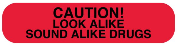 CAUTION LOOK ALIKE, Medication Instruction Label, 1-5/8" x 3/8" is available to buy in increments of 1