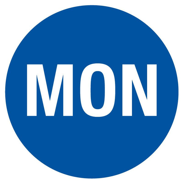Product Usage: Day of the week system label draws attention to important inventory information quickly and easily.