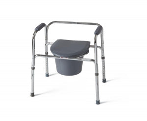 Designed for use in the bathroom as an elevated toilet seat or as safety rails; also used bedside for those who may not be mobile enough to walk to the bathroom