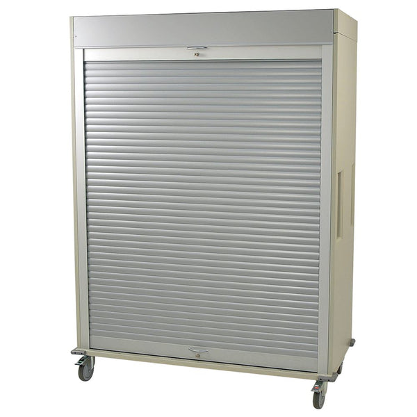 Designed to incorporate a modular tray system, this storage system provides 30% more storage capacity than other similar units. Tambour door. Accessorize with bins or wire baskets to maximize your unit to your needs. Frames are 20-gauge steel. Ships freight. Specify color: Beige, Burgundy, Hammer Blue, Hammer Green, Hammer Grey, Light Blue, Light Grey, Mauve, Navy, Red, Teal, White, or Yellow.