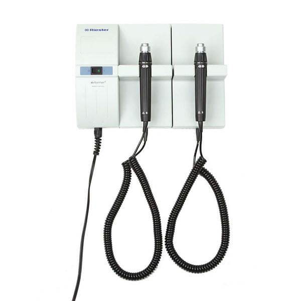 is a modular system with many options to meet your exact needs. Basic system includes wall transformer (with or without a digital clock) with 2 rheotronic handles. System can be expanded up to 5 handles. Some models include otoscope and ophthalmoscope heads. Additional extension modules include aneroid, handle, thermometer, and specula dispenser. Modules can be attached to the left or the right of the base.