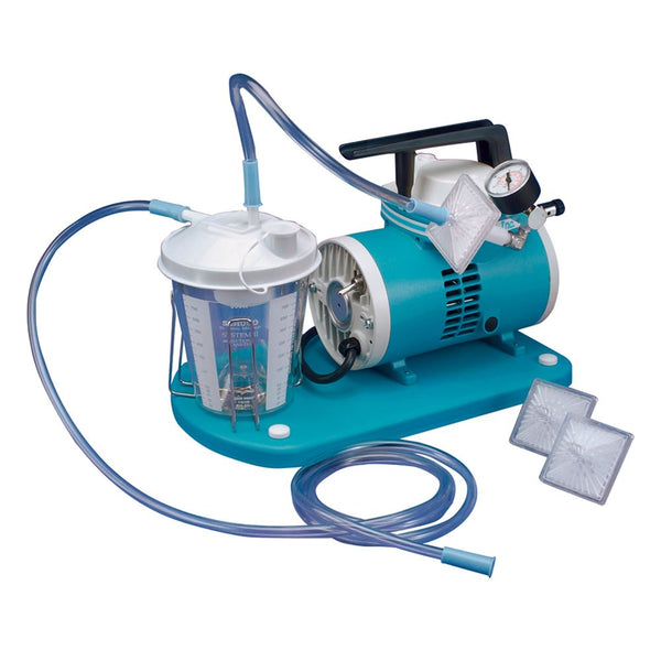 Schuco Vac Aspirating Pump System Controlled vacuum regulation to 22" Hg for ENT drainage and tracheal, bronchoscopic, and proctologic suction. 800-cc plastic canister has overflow protection. Complies with TJC requirements. Quick-connect tubing and hydrophobic filter eliminates head flooding, which causes pump damage. Permanently lubricated. Vibration-free, easy-to-read regulator gauge.