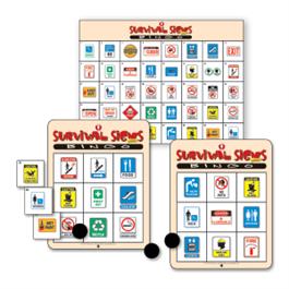 Survival Signs Bingo games feature the 80 signs found in Survival Signs Curriculum. These fun games are especially effective with individuals with limited or no reading skills. The full-color signs are ideally suited for visual learners. Both games are effective to use as a review of Survival Signs before and after community outings.