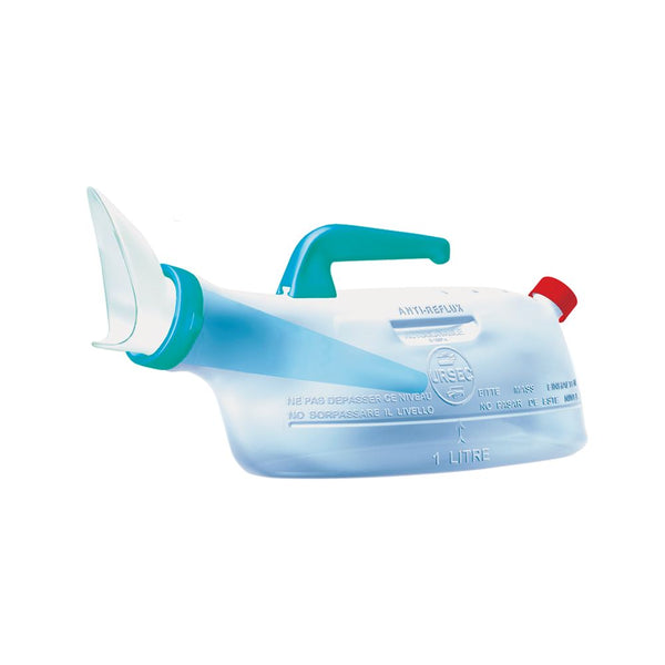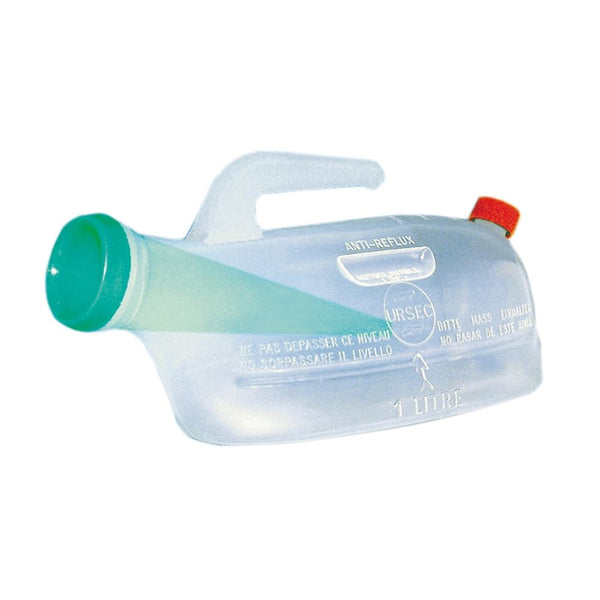 Innovative anti-reflux system will not spill even if completely rolled over. Made from shock-resistant plastic, URSEC is easy to hold and manipulate. Large ergonomic handle conveniently hangs on bedrail. Quickly and hygienically empty contents using screw-on MT Quick Cap. Autoclavable with volume indicators. Holds up to 32 oz. Case of 6.